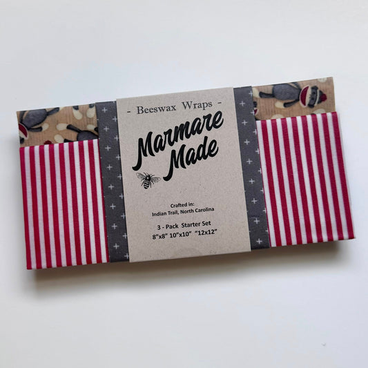 3 Pack Beeswax Wraps | Reusable Food Wraps | "Sock Monkey" pattern