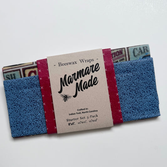 3 Pack Beeswax Wraps | Reusable Food Wraps | "Vintage Garage" pattern