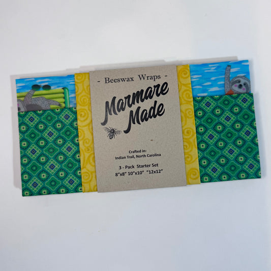 3 Pack Beeswax Wraps | Sloth | Reusable Food Wraps | "Sloth" pattern