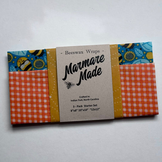 3 Pack Beeswax Wraps | Reusable Food Wraps | "Bee Damask" pattern