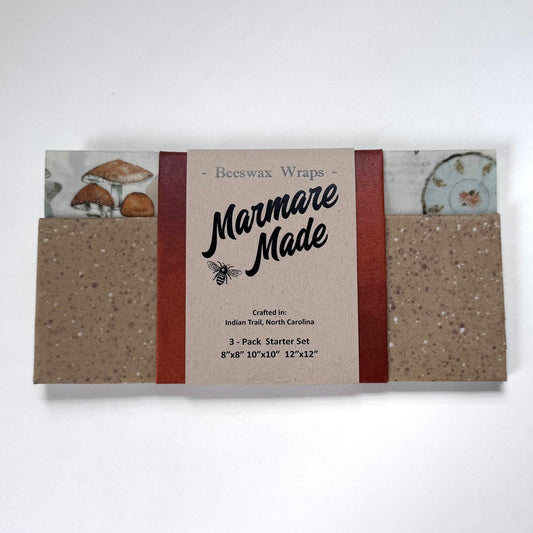 3 Pack Beeswax Wraps | Reusable Food Wraps | "Subtle Mushrooms" pattern