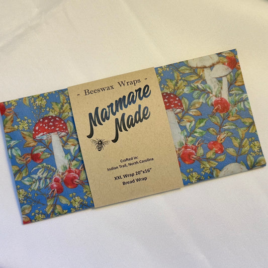 XXL Wrap | 20"x16" | Bread Bag | Sour Dough | "Mushrooms on Blue”