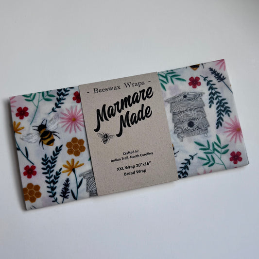 XXL Wrap | 20"x16" | Bread Bag | Sour Dough | "Tossed Bees White"