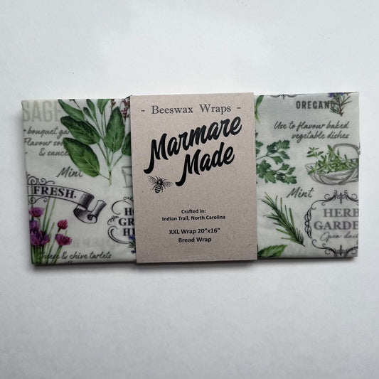 XXL 20"x16" Beeswax Wrap | Bread Bag | Sour Dough | "Fresh Herbs” pattern
